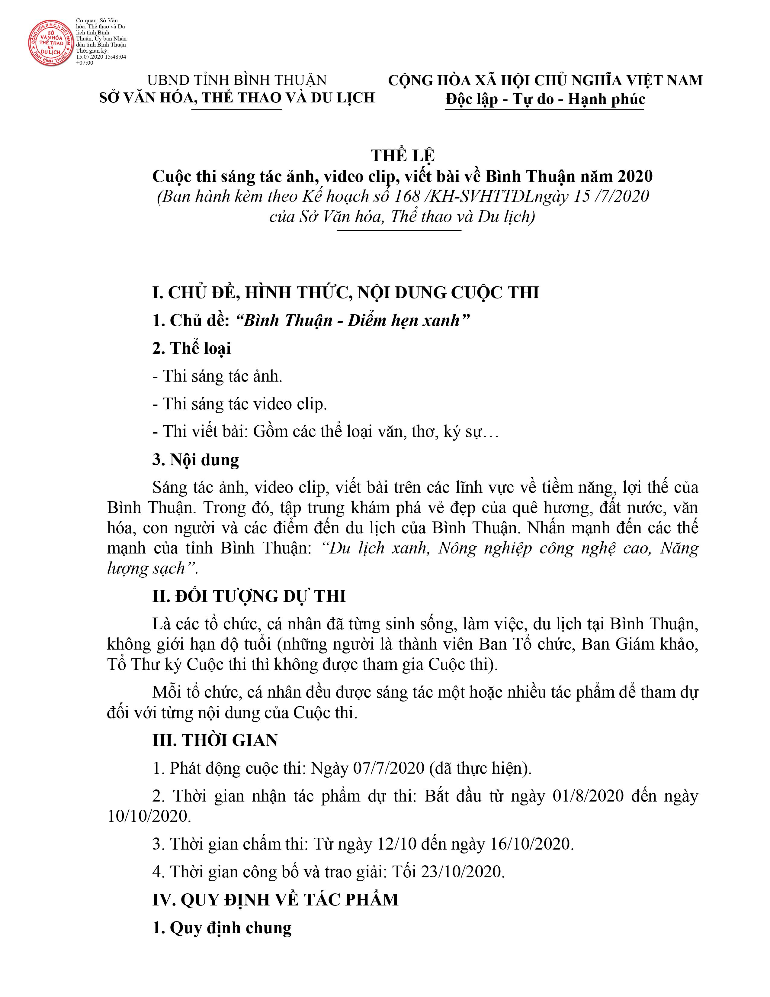 2. Dối với thi sáng tác Video clip về Bình Thuận:
