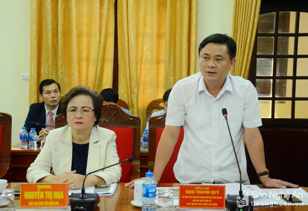 Dự cuộc làm việc có các đồng chí: Nguyễn Xuân Sơn - Phó Bí thư Thường trực Tỉnh ủy, Chủ tịch HĐND tỉnh; Thái Thanh Quý - Ủy viên dự khuyết Trung ương Đảng - Phó Bí thư Tỉnh ủy, Chủ tịch UBND tỉnh; Nguyễn Văn Thông – Phó Bí thư Tỉnh ủy; các đồng chí trong Ban Thường vụ Tỉnh ủy; lãnh đạo các sở, ban, ngành cấp tỉnh; đại diện lãnh đạo TP Vinh, thị xã Cửa Lò và Nghi Lộc. Về phía Tập đoàn BRG có bà Nguyễn Thị Nga- Chủ tịch Tập đoàn BRG. Ảnh Thanh LêMục tiêu của đồ án nhằm cụ thể hóa các định hướng điều chỉnh quy hoạch chung của TP Vinh đến năm 2030, tầm nhìn 2050 đã được Chính phủ phê duyệt tại Quyết định số 52 ngày 14/1/2015.