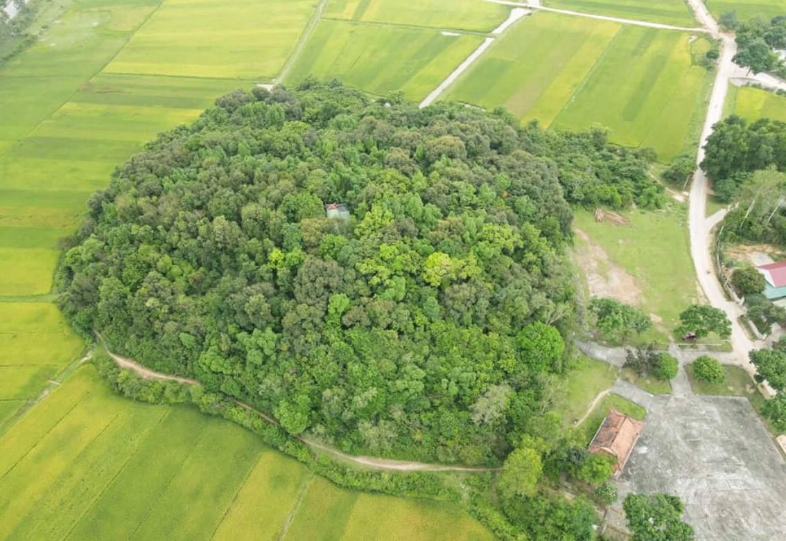 Sở dĩ có tên núi Dẻ, bởi toàn bộ khu vực này là cả một cánh rừng dẻ, có những cây dẻ gốc to tới hai ba người ôm mới xuể. Trong kháng chiến chống Mỹ cứu nước, nhân dân có khai thác một số cây dẻ ở đây để xây dựng hầm trú ẩn, làm trường học và bắc cầu cho xe qua. Hiện nay rừng dẻ đã hồi sinh, vẫn còn đó không ít cây dẻ cổ thụ, mùa hoa dẻ hương thơm dịu dàng của nó, hòa trong gió cách xa vài km người ta vẫn cảm nhận được vị ngọt ngào của hoa dẻ. Trên các cành cây là ngôi nhà của nhiều loài chim, mùa nào chim nấy. Dường như chỉ có ở đây chúng mới tìm thấy sự bình yên cho mình, chúng thoải mái chuyền cành gọi bầy... Tất cả tạo nên một bản nhạc đầy màu sắc thú vị. Từ ngoài nhìn vào sự thâm u, tĩnh mịch của núi dẻ cộng với hương thơm của hoa dẻ và âm thanh của các loài chim càng làm tăng nét huyền bí, sự linh thiêng cho di tích, gợi nên sự tò mò và phát huy trí tưởng tưởng của du khách tham quan, thưởng ngoạn di tích.