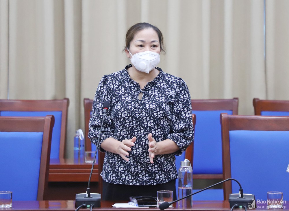 Đồng chí Nguyễn Thị Thu Hường - Ủy viên BTV, Trưởng Ban Tuyên giáo Tỉnh ủy phát biểu tại buổi làm việc. Ảnh: Phạm BằngTrưởng Ban Tuyên giáo Tỉnh ủy Nguyễn Thị Thu Hường cho rằng, Ban chỉ đạo phòng, chống Covid-19 tỉnh nên thành lập tổ thông tin tuyên truyền để cung cấp thông tin chính thống cho cơ quan báo chí theo hướng nhanh, đầy đủ, chính xác. Bên cạnh đó, cần có những biện pháp quan tâm đến lực lượng tuyến đầu phòng, chống dịch và tại các tổ chốt kiểm soát.