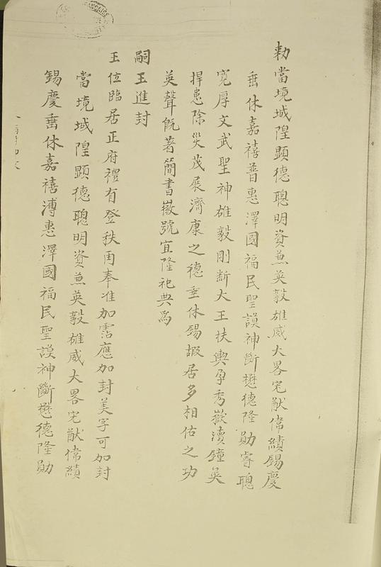 ...Nên vâng chỉ chuẩn tặng phong Trung đẳng, xứng đáng được gia phong là: Đương cảnh thành hoàng Thiên Đá Phúc linh Thông minh Chính trực Anh nghị Quả đoán Duệ trí Hùng lược Bác hậu Trung hòa Bố đức Tuyên nhân Ứng thụy Hồng mô Thống quốc Cao danh Đại nghiệp Hưng lễ Thịnh công Khai cơ Đại vương.”