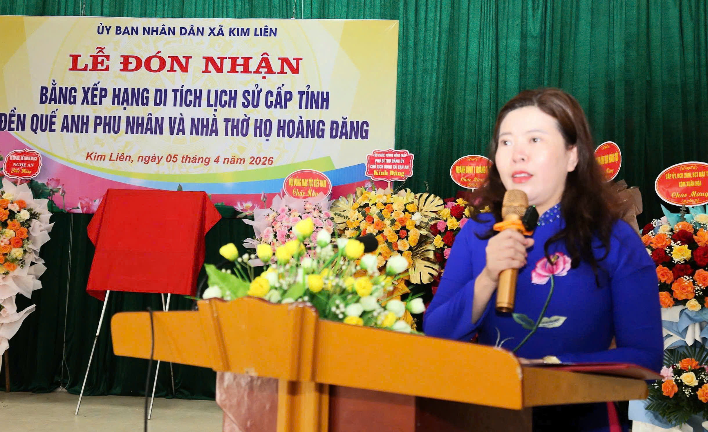 Sáng ngày 5/4/2026 (nhằm ngày 18/2 năm Bính Ngọ), UBND xã Kim Liên long trọng tổ chức lễ đón nhận bằng xếp hạng di tích lịch sử cấp tỉnh Đền Quế Anh phu nhân và Nhà thờ họ Hoàng Đăng. Đây là sự kiện có ý nghĩa quan trọng, ghi nhận những giá trị tiêu biểu về lịch sử, văn hóa và truyền thống tốt đẹp của địa phương.