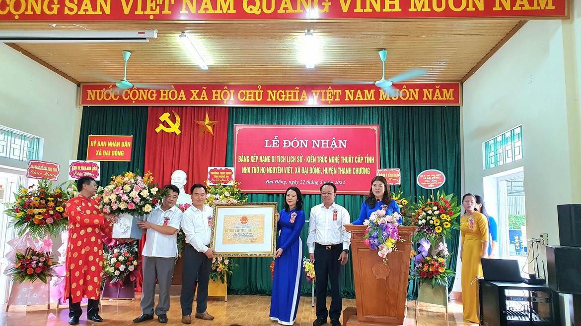 Sáng ngày 22/5/2022, UBND xã Đại đồng, huyện Thanh Chương đã long trọng tổ chức lễ đón nhận bằng xếp hạng di tích lịch sử - kiến trúc nghệ thuật nhà thờ họ Nguyễn Viết.