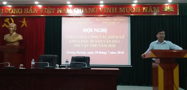Nằm trong chương trình công tác tháng 7 năm 2020 của Ban quản lý Di tích Nghệ An. Hôm nay, ngày 20/7/2020 Ban quản Lý Di tích Nghệ An phối hợp với UBND huyện Tương Dương, Phòng VHTT, Trung tâm VHTT-TT huyện Tương Dương cùng UBND 17 xã, thị trấn trên địa bàn huyện tổ chức hội nghị triển khai nhiệm vụ kiểm kê di sản văn hóa phi vật thể trên địa bàn theo nội dung Kế hoạch số 244/KH-UBND ngày 18/4/2018 của UBND tỉnh về kiểm kê di sản văn hóa phi vật thể trên địa bàn tỉnh Nghệ An giai đoạn 2018-2020.