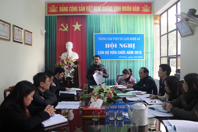 Đồng chí Dương Hoàng Vũ đánh giá cao những thành tích mà Trung tâm Thông tin Xúc tiến Du lịch đã đạt được trong năm 2017 và mong muốn năm 2018, cán bộ viên chức trung tâm tiếp tục phát huy tinh thần dân chủ, đoàn kết, cộng sự, phấn đấu để triển khai thực hiện đúng tiến độ, chất lượng, hiệu quả các nhiệm vụ về tăng cường quảng bá, xúc tiến du lịch trong chương trình hành động của BTV Tỉnh ủy, Kế hoạch của UBND tỉnh về thực hiện Nghị quyết 08 của Bộ chính trị về phát triển du lịch trở thành ngành kinh tế mũi nhọn góp phần cùng với Sở du lịch hoàn thành mục tiêu du lịch Nghệ An năm 2018. ( Kim Cương)