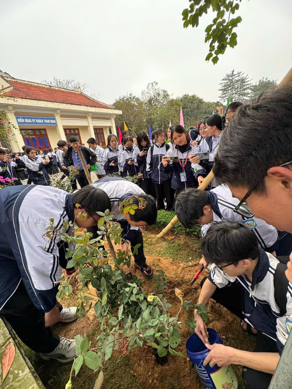Trường THPT chuyên Phan Bội Châu không chỉ quan tâm đến chất lượng giáo dục mà hàng năm Nhà trường còn chú trọng tổ chức các hoạt động trải nghiệm, về nguồn nhằm khơi dậy tình yêu quê hương đất nước, đạo hiếu tri ân các bậc tiền nhân. Khắc ghi lời dạy của Bác kính yêu và di huấn thiêng liêng của Người “Vì lợi ích mười năm phải trồng cây, vì lợi ích trăm năm phải trồng người” “Mùa Xuân là tết trồng cây/ Làm cho đất nước càng ngày càng Xuân”. Và trong không khí ấm áp của mùa Xuân Ất Tỵ 2025, tập thể nhà trường, Thầy cô và hơn 1000 em học sinh khối 10 và khối 12 đã tề tựu về tại Di tích QGĐB khu lưu niệm Phan Bội Châu tổ chức chương trình Tết trồng cây góp phần tô đẹp cảnh quan di tích, thể hiện lòng biết ơn sâu sắc với cụ Phan Bội Châu.