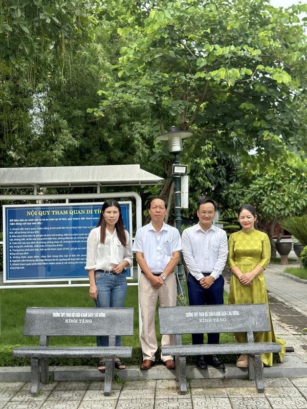 Để tri ân nhà chí sỹ, hôm nay thầy giáo Vũ Đình Mạnh - Hiệu trưởng nhà trường đã về tại Di tích QGĐB khu lưu niệm Phan Bội thành kính thắp nén tâm hương bày tỏ tấm lòng biết ơn sâu sắc đối với những công lao của cụ Phan Bội Châu trong phong trào giải phóng dân tộc những năm đầu thế kỷ 20. Đồng thời nhà trường kính tặng Di tích bộ ghế đá. Đây là tấm lòng đáng trân quý của nhà trường dành cho Di tích.