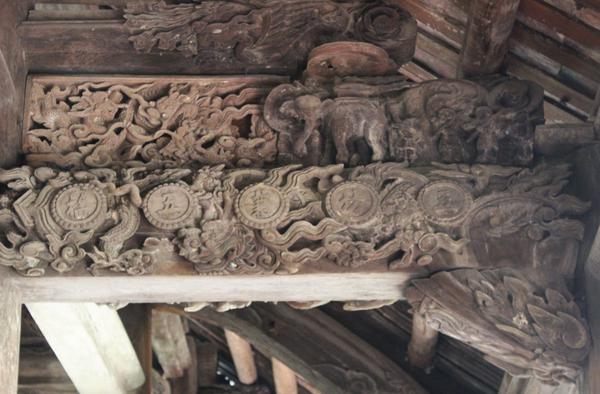 Điều đặc biệt ở nhiều đình làng Nghệ An như đình Hoành Sơn, đình Đông Viên... là mặc dầu thuộc niên đại thế kỷ XVIII, nhưng ở đây vẫn còn đầy các hình ảnh chạm trổ về con người (đánh cờ, chăn trâu, đi cấy...), về hoạt cảnh (vinh quy bái tổ, xem điểm thi...) và sự tự do của các linh vật cũng như các con vật bình thường. Hiện tượng ấy đã xảy ra ở vùng châu thổ sông Hồng vào thời kỳ đỉnh cao của nghệ thuật đình làng mà như Nhà nghiên cứu về kiến trúc cổ Thái Bá Vân đã nói rõ ràng là nghệ thuật chạm khắc này chỉ đến khoảng những năm 80,90 của thế kỷ XVII, sau đó, trên đất Bắc gần như các đề tài này không xuất hiện. Tính chất của các mảng chạm như một kế thừa trực tiếp từ nghệ thuật dân dã đỉnh cao ở cuối XVII. Song tới đây, hình tượng con người đã khá thực, nhiều khi chú ý tới từng chi tiết, chỉ có động tác, dáng dấp là được chọn lọc khá kỹ để cho mảng chạm trở nên tươi vui, sống động.