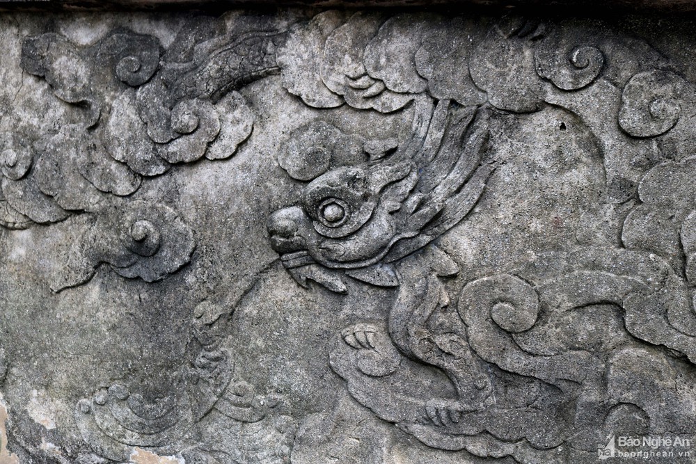 Hình ảnh rồng vờn mây được đắp nổi trên tắc môn. Ảnh: Huy Thư.