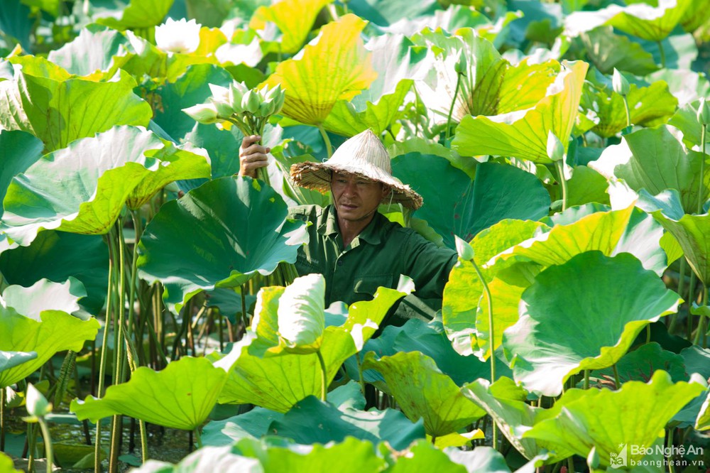 Những đầm sen ở Nghệ An hiện nay chủ yếu được người dân trồng bán. Bên cạnh sen hồng thì sen trắng cũng là loài được trồng nhiều. Ảnh: Sách Nguyễn