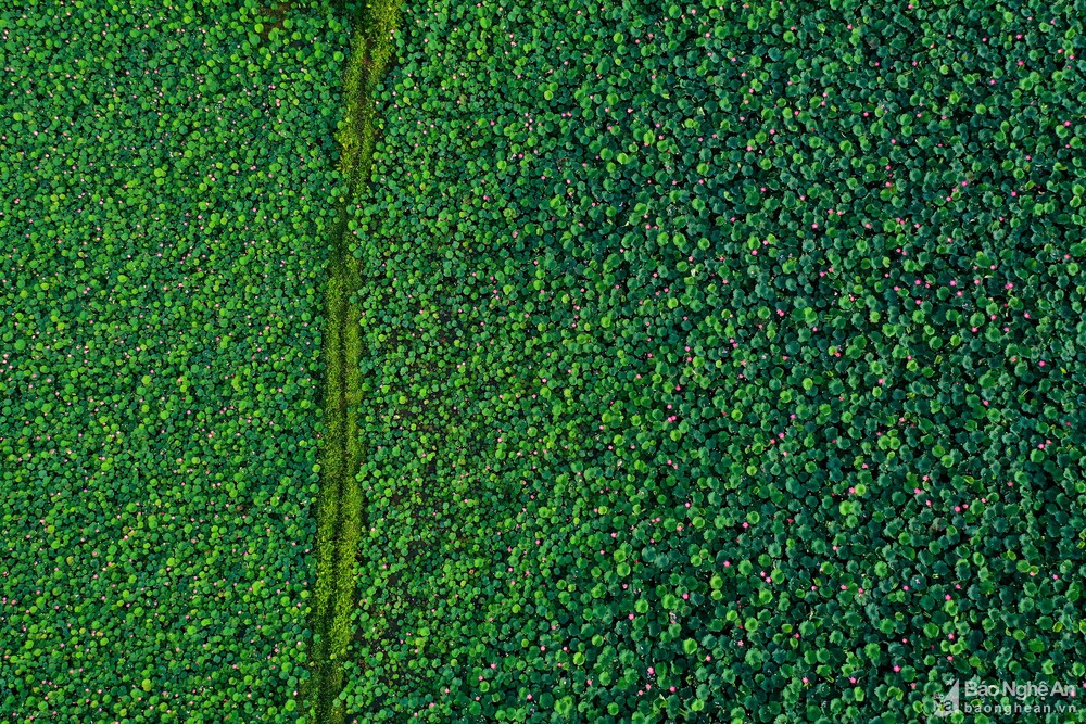 Những đốm hồng giữa đầm xanh mênh mông tạo nên bức tranh tuyệt mỹ của thiên nhiên.