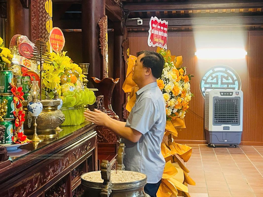 Đồng chí Lê Phạm Hùng – Bí thư Đảng ủy, Chủ tịch HĐND xã Hưng Nguyên Nam thay mặt đoàn tiến lễ lên anh linh TBT Lê Hồng Phong.